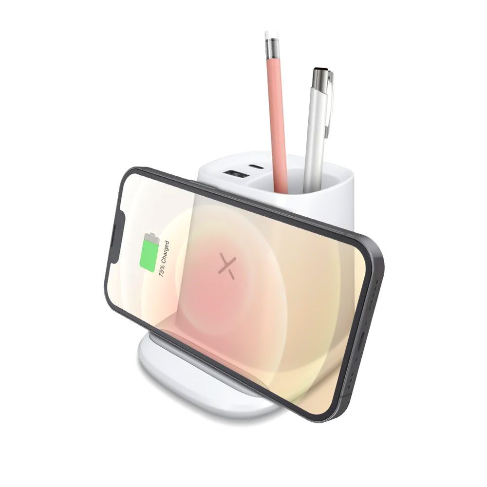 Настольный органайзер Limerick - идеальный выбор для тех, кто ищет долговечный промосувенир, способный на все 100% напоминать о бренде. Этот функциональный аксессуар поможет организовать рабочее пространство своего владельца и обеспечить комфорт даже в мелочах. Беспроводная зарядка телефона и встроенный вентилятор станут приятными дополнениями, позволяющими облегчить рабочие будни и сделать их более продуктивными. Ваш бренд останется на виду и в сердце благодаря настольному органайзеру Limerick, который станет незаменимым помощником на рабочем столе.Комплекталия: кабель USB Type-C, инструкция на русском языке, вентилятор. Электропитание, вход: 5V/2A. Выход: Беспроводная зарядка - 5W, USB - 5V/2A, Type-C - 5V/2A.Для работы беспроводной зарядки необходимо подключать устройство к сети через адаптер.
